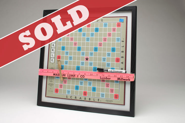 Scrabble dry erase with pink vintage yardstick (dray erase, yardstick organizer/prop) approx. 17"x17" . . . $30.00