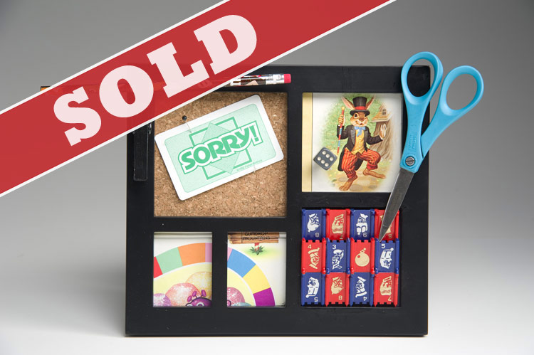 desktop piece with elements from Uncle Wiggily, Candyland and Stratego, approx. 9"x8" . . . $15.00 (scissors not included)