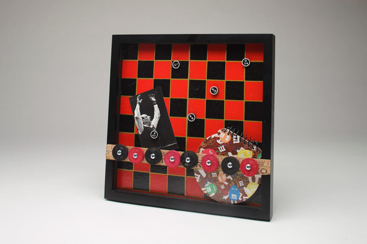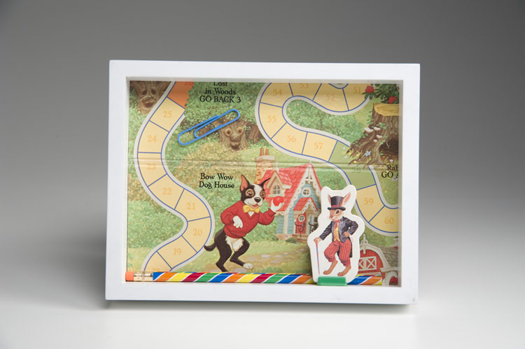 desktop piece with elements from Uncle Wiggily, Candyland and Stratego, approx. 9"x8" . . . $15.00 (scissors not included)