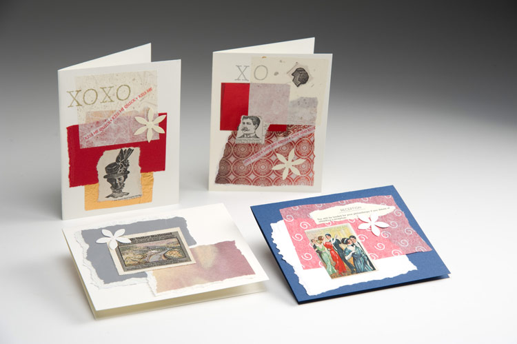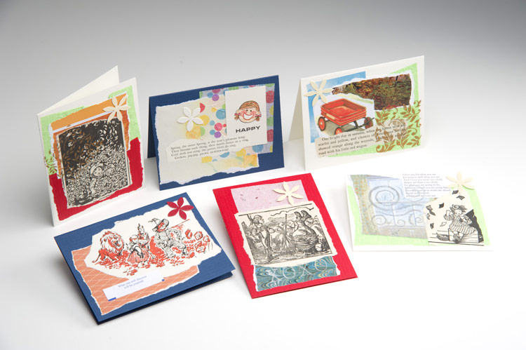 text and illustrations from vintage storybooks are also favorites; sometimes board game cards are used, too